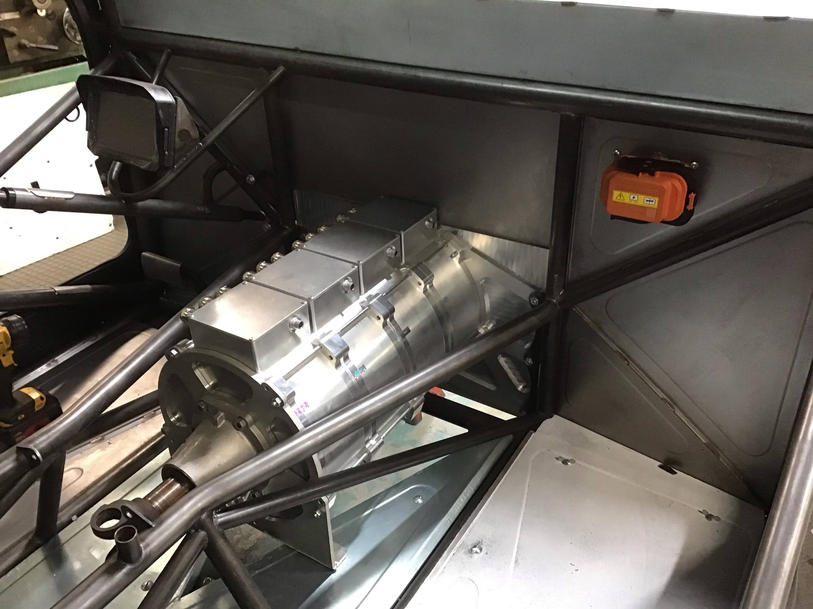 Four high-performance 301mm AC motors arranged inline, delivering unprecedented torque and power. The setup includes an advanced two-speed gearbox with solenoid-operated gear changes completing in a fraction of a second for seamless power delivery.